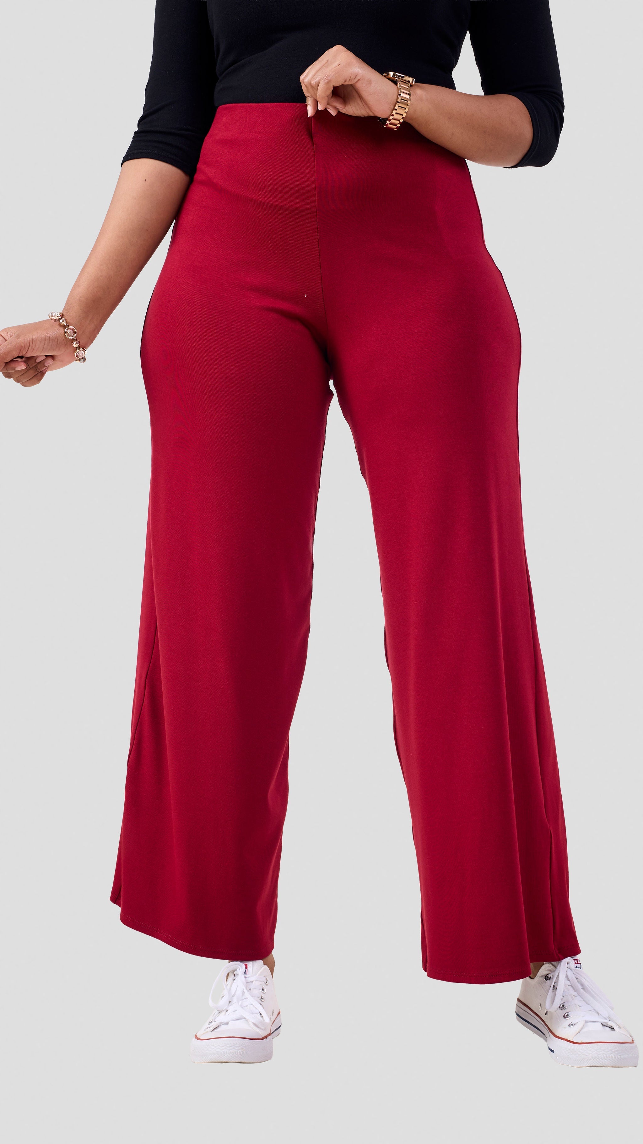 Step into pure comfort with the Vivo Chela Jersey Pallazo Pants in eye-catching Dark Red! These wide-leg beauties feature soft, stretchy jersey fabric that moves with your body, giving you that coveted relaxed-yet-put-together vibe. Perfect for lounging, running errands, or making a bold fashion statement, the flowing pallazo cut keeps things breezy and fun. That vibrant fuschia shade? It's basically a wearable confidence boost. Slip them on and let your style do the talking!