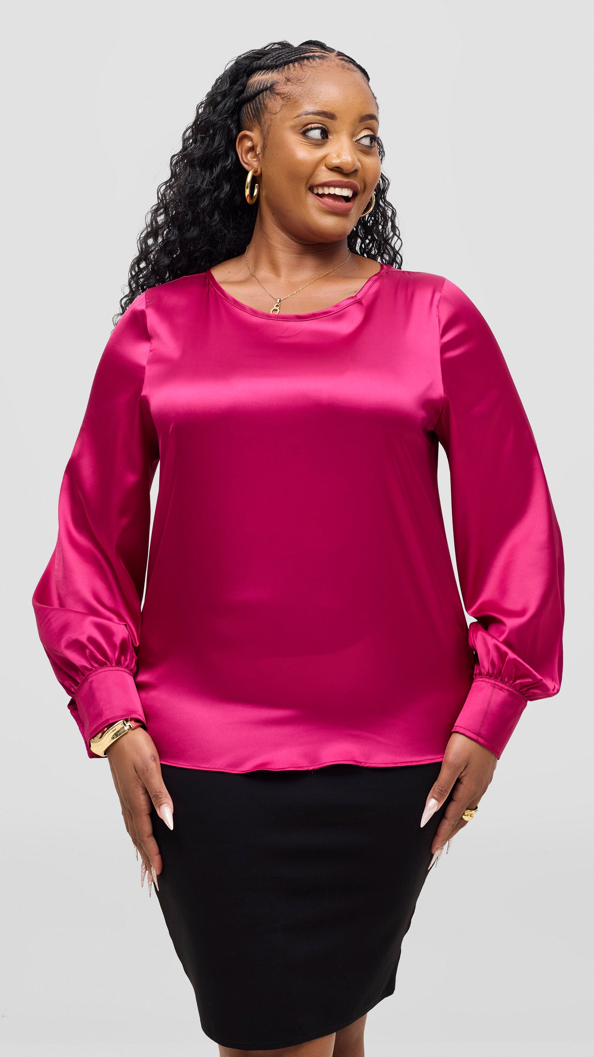 Discover the Vivo Tatili Bishop Long Sleeve Top in fuschia—a wardrobe essential that transforms your look with effortless grace. The distinctive bishop sleeves create an elegant silhouette that flatters every frame, while the calming mint shade complements all skin tones beautifully. Whether you're dressing for the office, a casual outing, or weekend gatherings, this versatile piece delivers timeless style that works harder than you'd expect. Invest in quality that lasts and sophistication that never goes out of style.