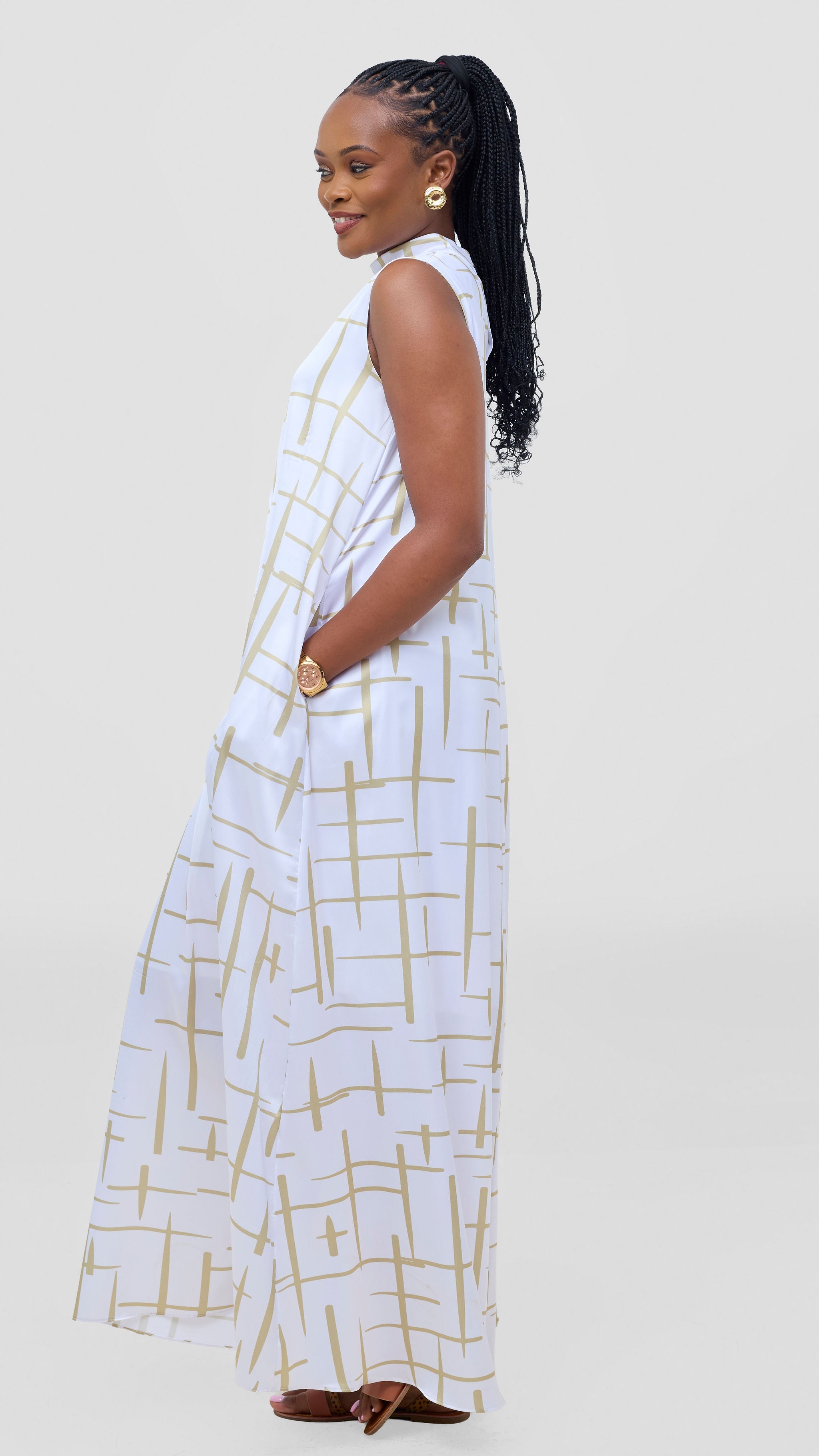 Experience the luxe feel of satin with this mock neck maxi dress, showcasing an elegant white and taupe Aria print. The silky fabric drapes gracefully against your body, creating a refined aesthetic that feels as good as it looks. The fitted mock neck provides structure and polish, while the maxi length offers freedom and movement. Style it your way—slip into heels for sophisticated evenings or pair with sandals for effortless daytime elegance. This versatile satin dress adapts to your mood and moment, making it the perfect investment piece for a woman who values both quality and flexibility in her wardrobe.