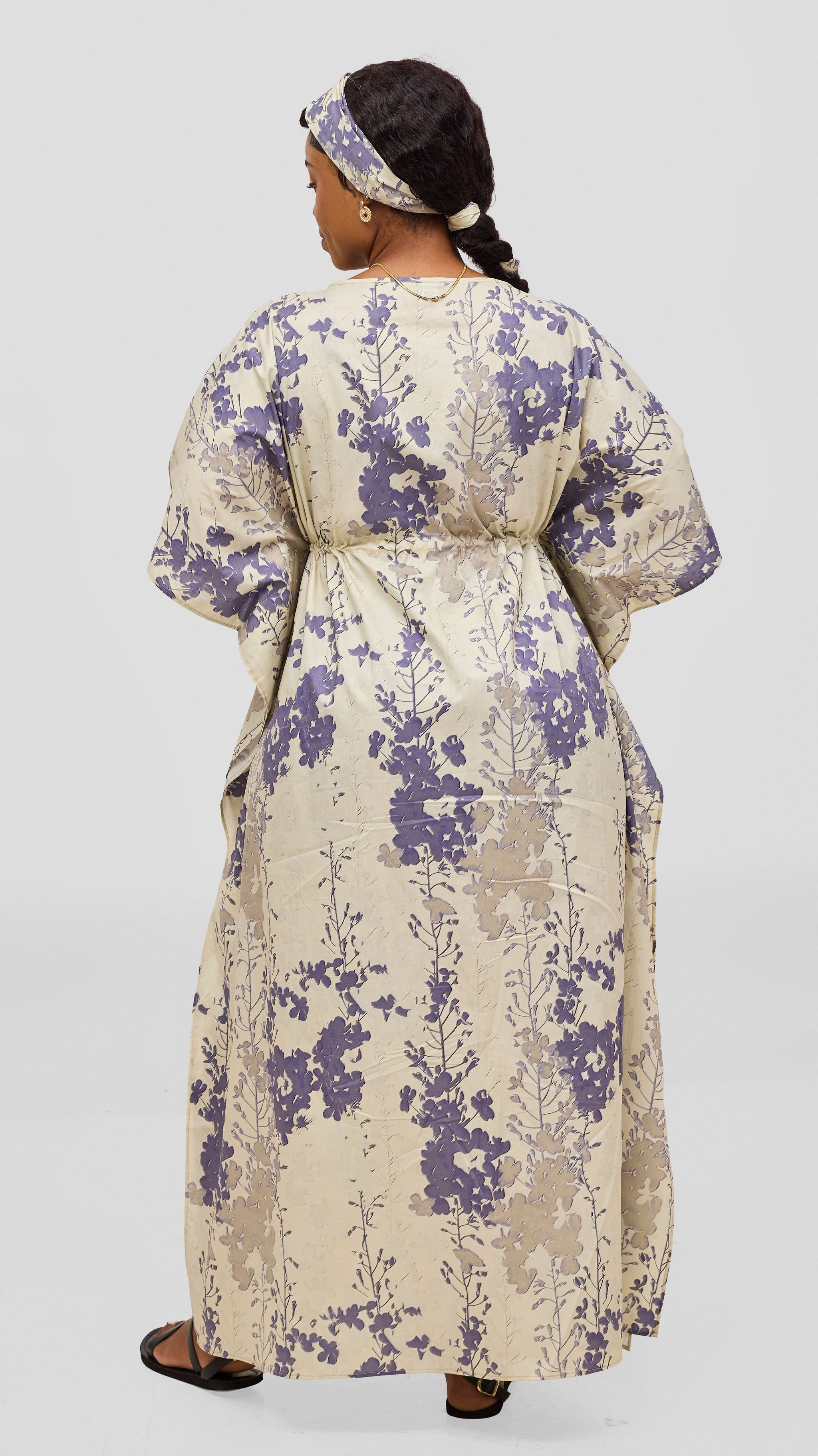 Safari by Vivo Cotton Wide Drawstring Kaftan - Cream / Lilac Print