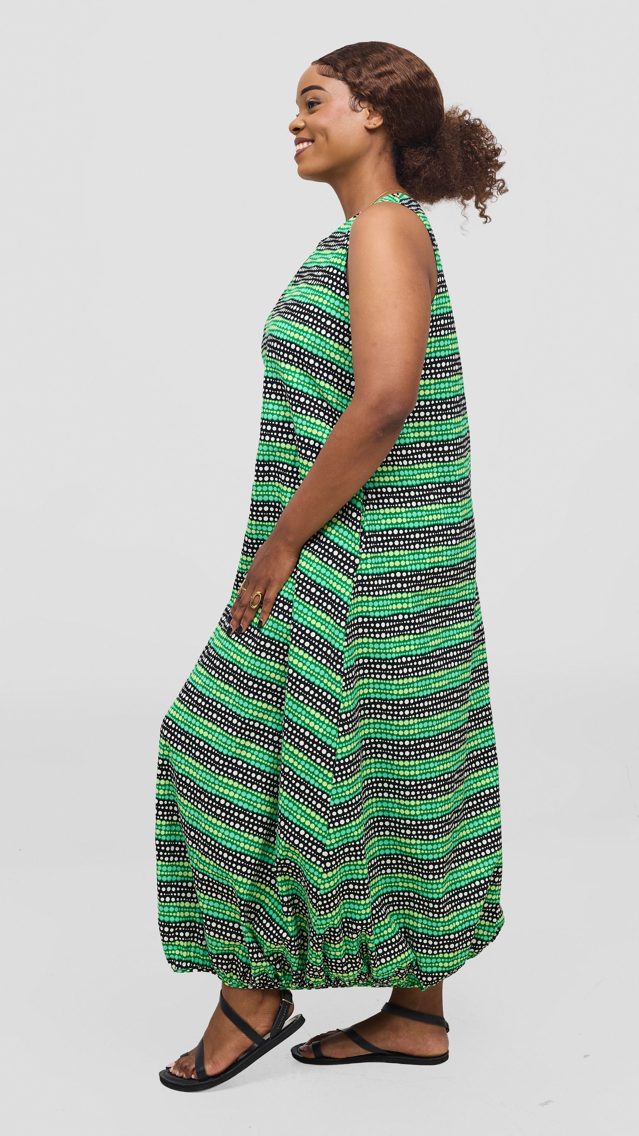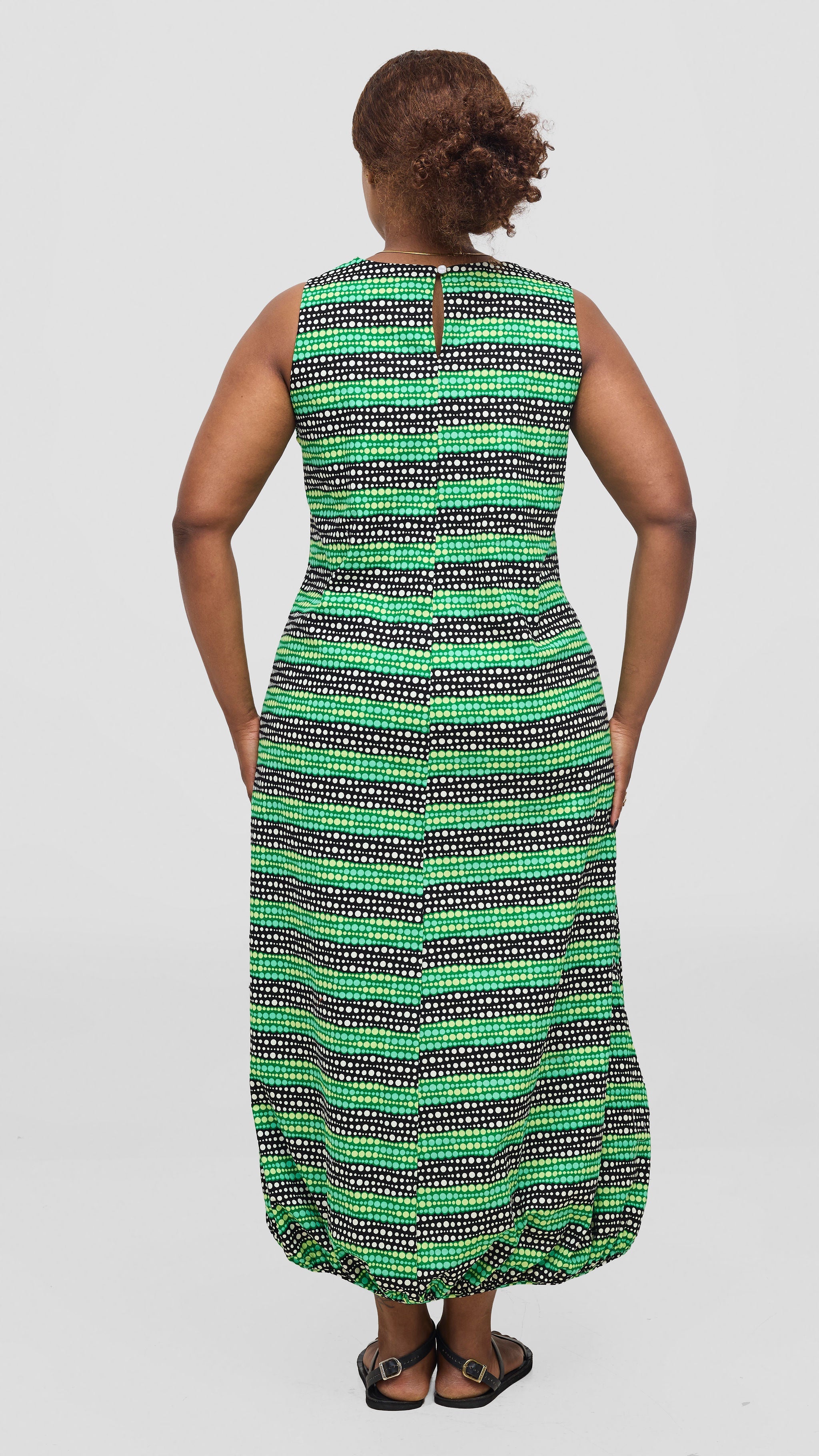 Celebrate your individuality with the Safari by Vivo Naledi Bubble Midi Dress in voni print. This beautifully crafted dress combines a striking candy-colored print with a graceful bubble hem that flatters and moves with you. The midi length provides elegant coverage while maintaining a modern, approachable feel. Perfect for anyone seeking a dress that balances comfort with confidence, this piece encourages you to embrace your personal style and feel empowered in what you wear every day.