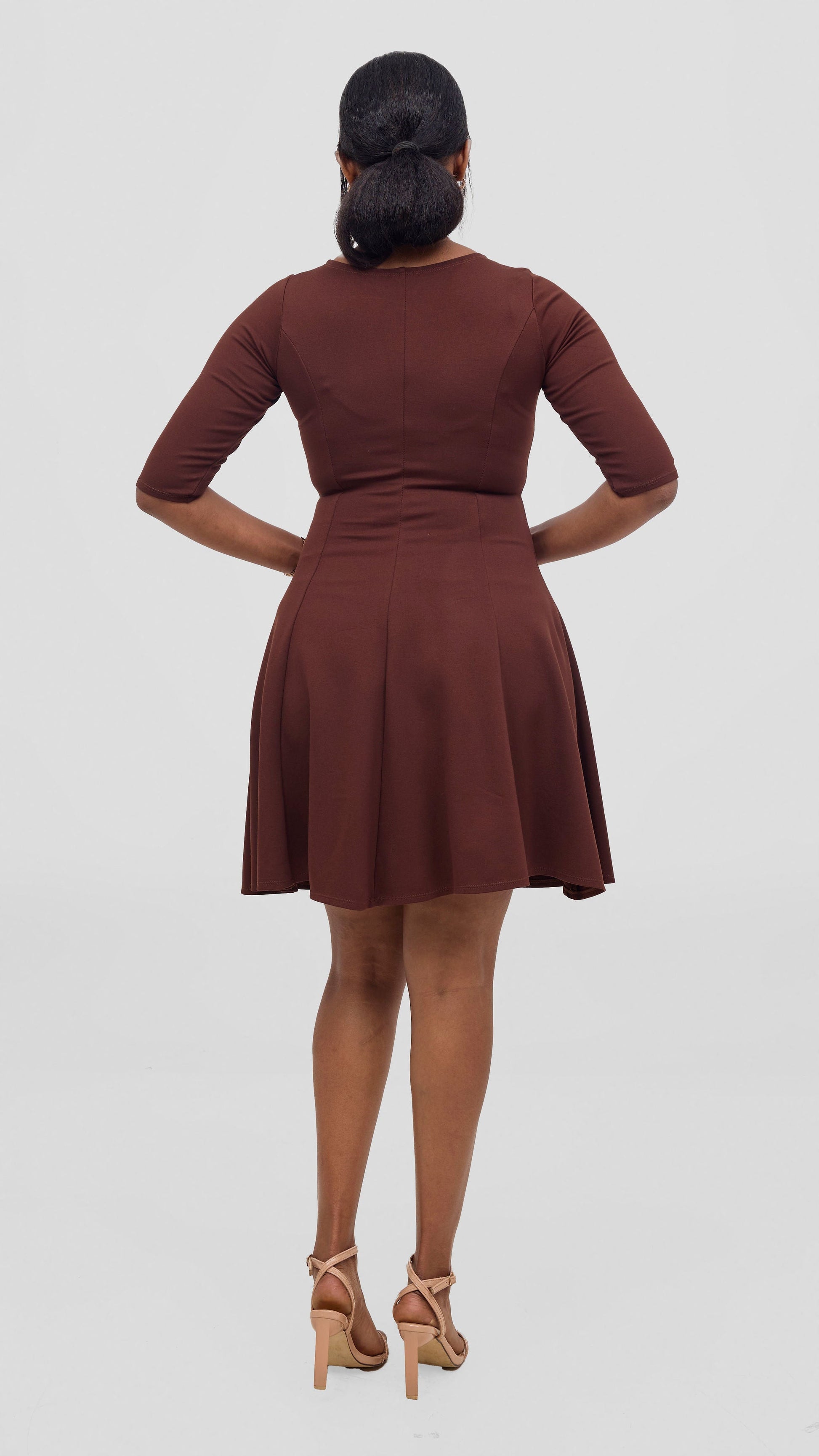 Vivo Aleri A-Line Pleated Dress - Chocolate