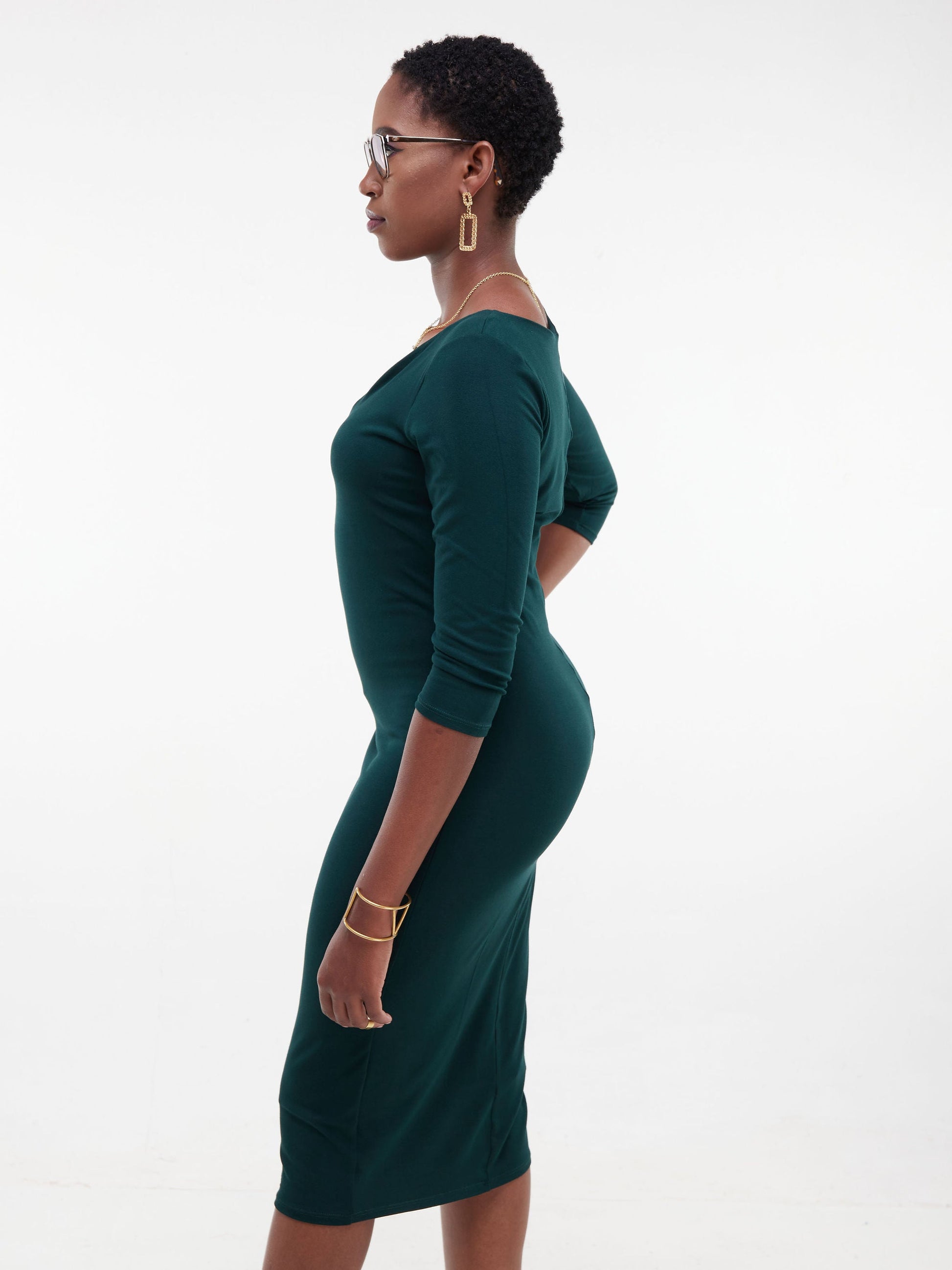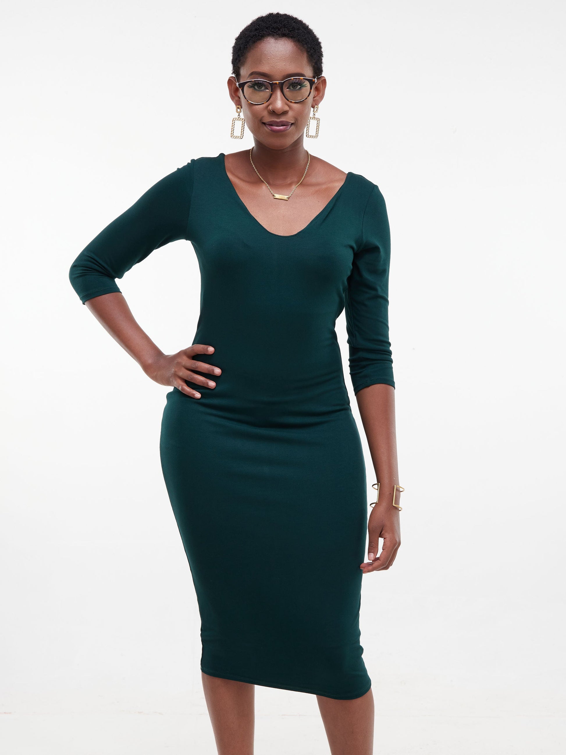Vivo Basic 3/4 Sleeve Double Layered Bodycon Dress - Dark Green