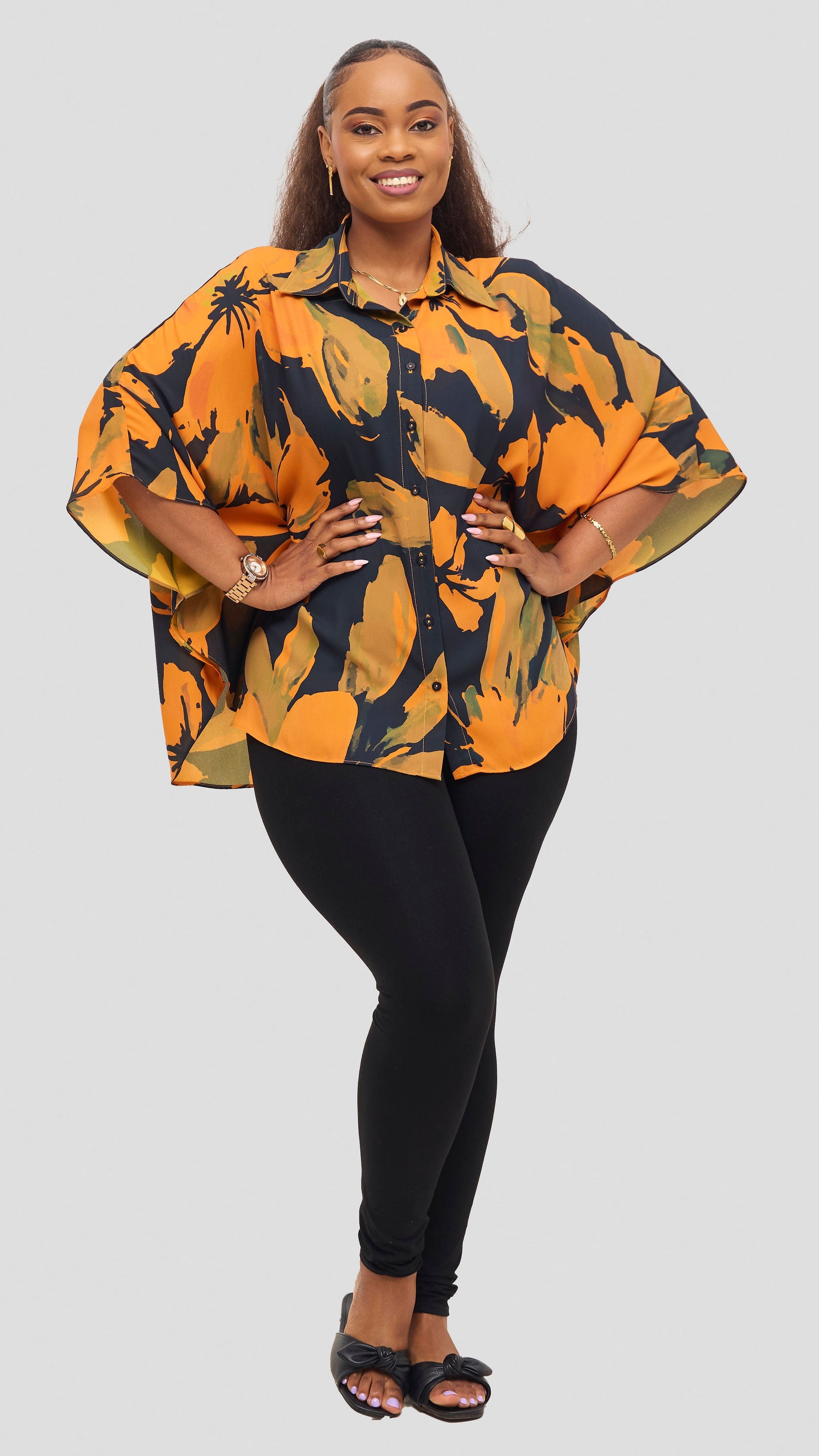 Embrace effortless elegance with the Vivo Iyana Cape Top in mustard / navy iya print. Its flowing cape design adds a graceful silhouette that enhances your style, while the vibrant green tone brings a fresh, confident look. Perfect for both casual outings and special occasions, this top combines comfort and sophistication to make you stand out with ease.
