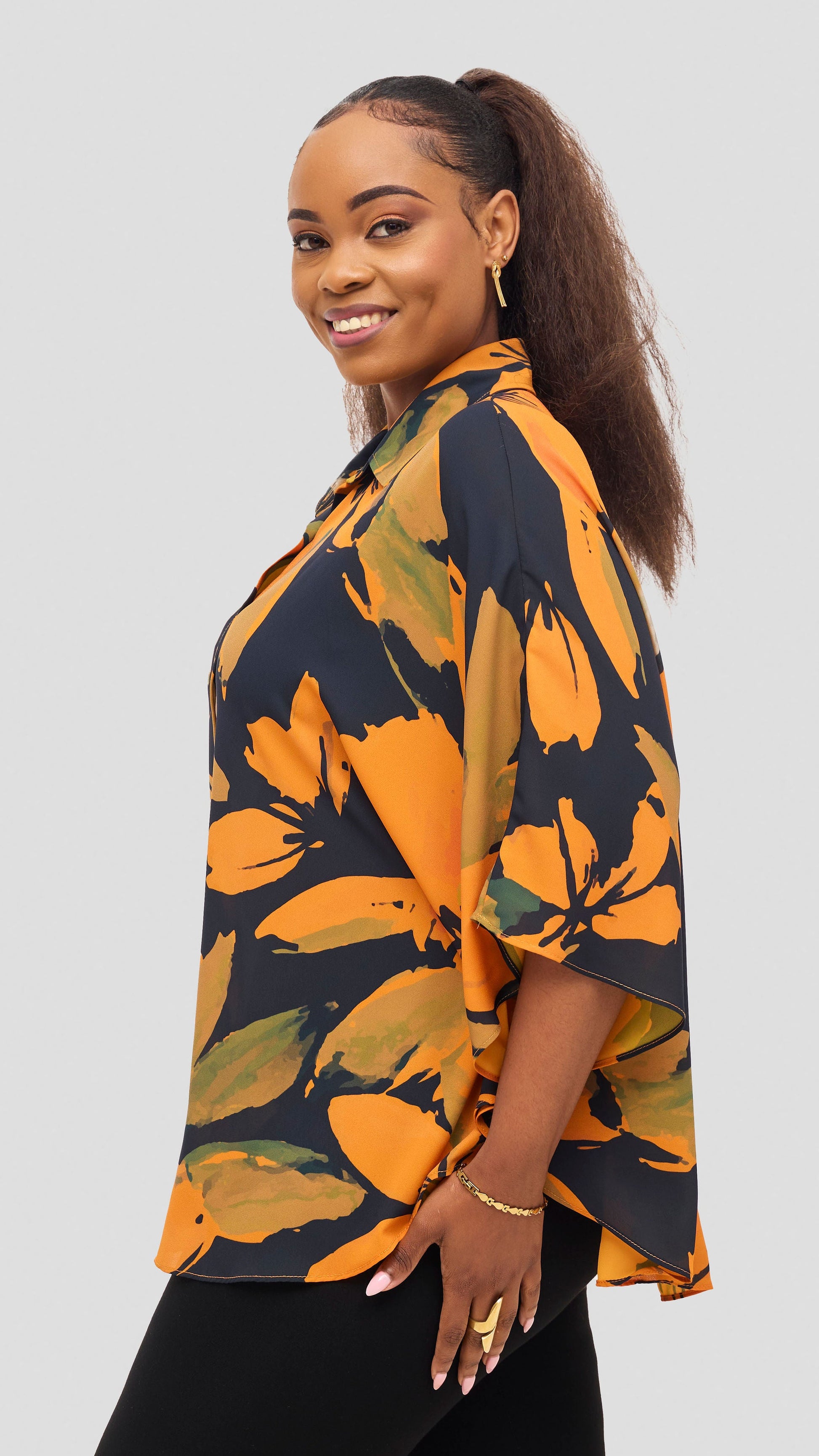 Vivo Iyana Cape Top - Mustard / Navy Iya Print