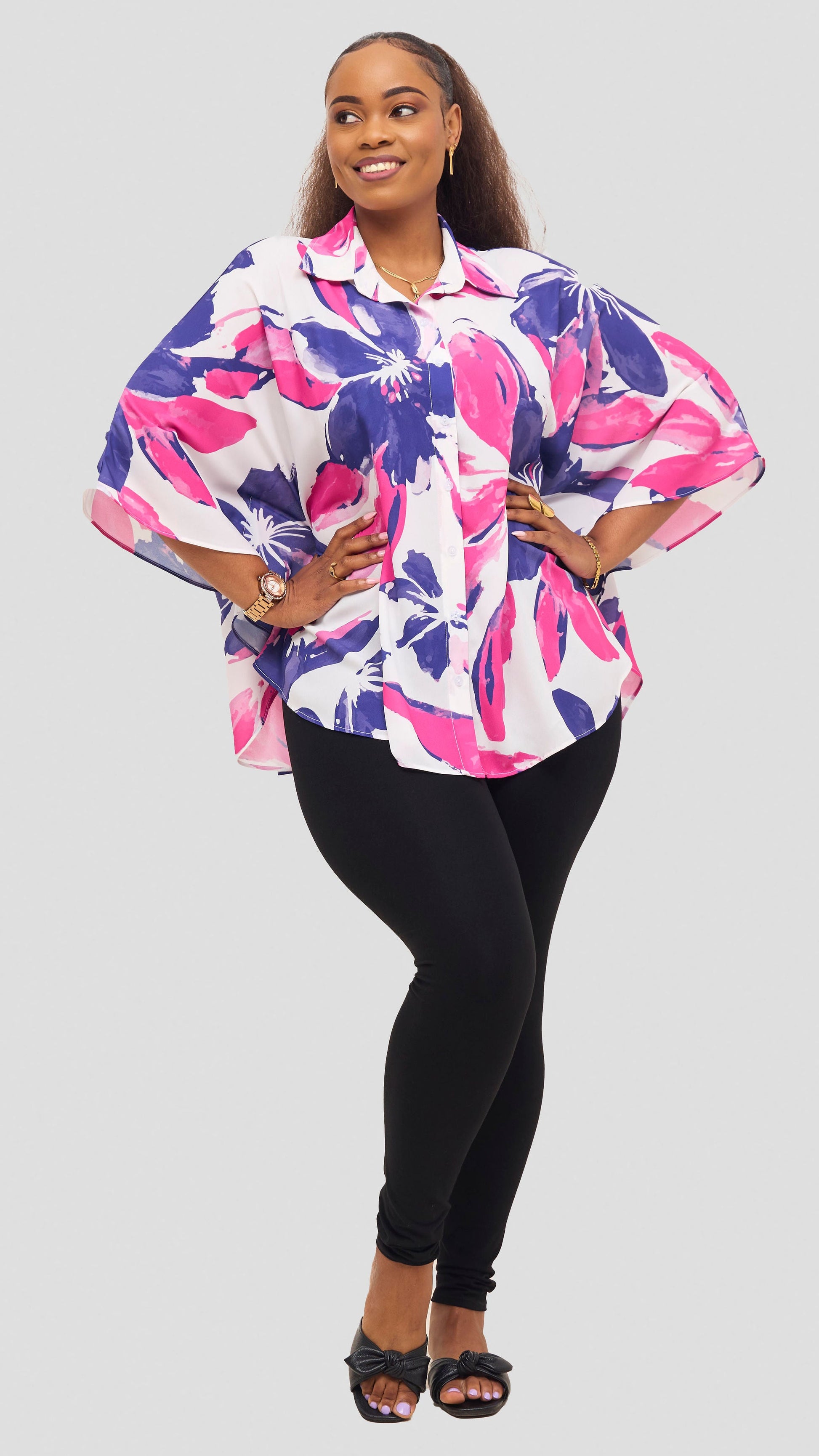 Vivo Iyana Cape Top - White / Fuschia Iya Print