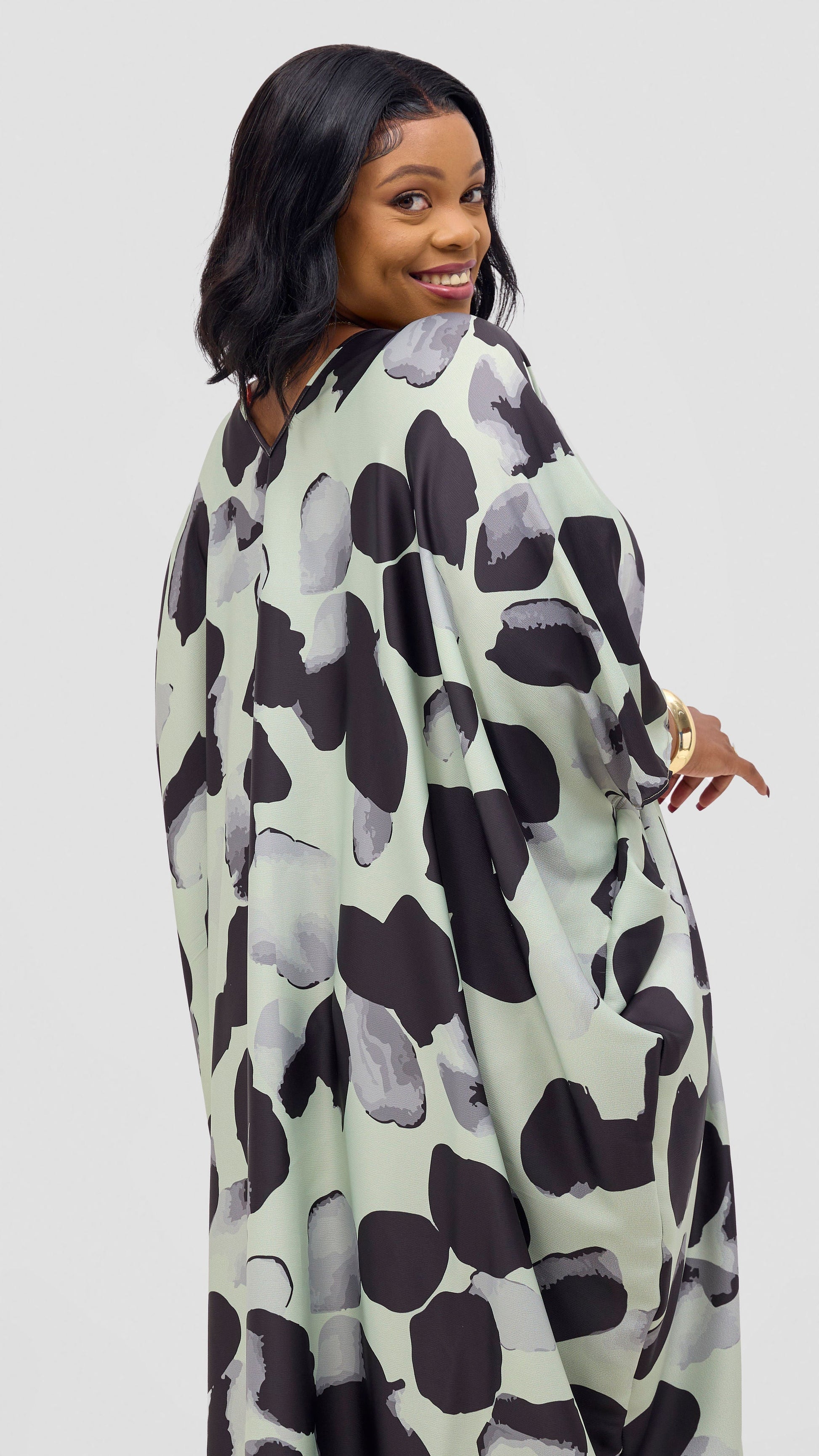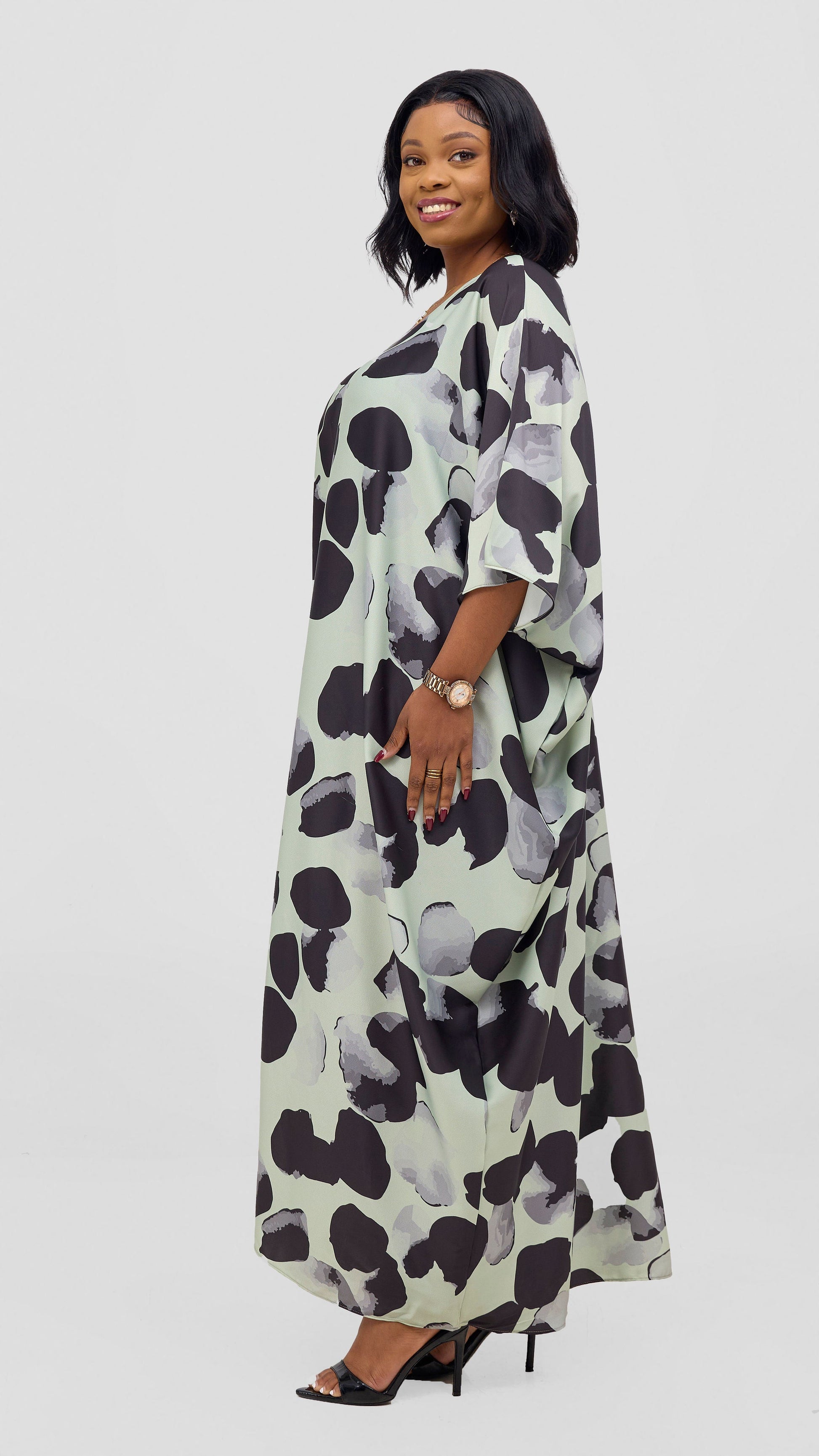 Vivo Keza V-Neck Maxi Kaftan - Olive / Black Arisi Print